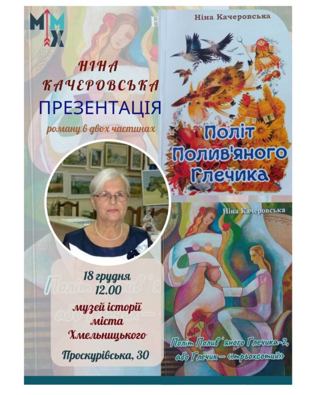 18 грудня 2025 року в музеї історії міста Хмельницького відбулася презентація роману у двох частинах «Політ Полив’яного Глечика» відомої подільської письменниці, журналістки, педагогині, краєзнавиці Ніни Качеровської.